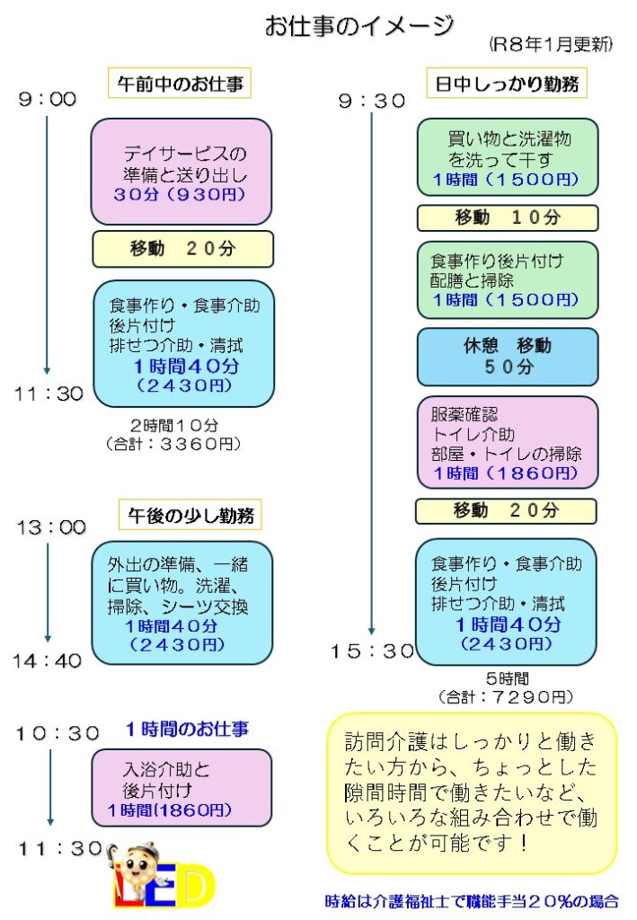 ☆時間給=(基本時給)+(資格手当)+(身体介護・生活援助)